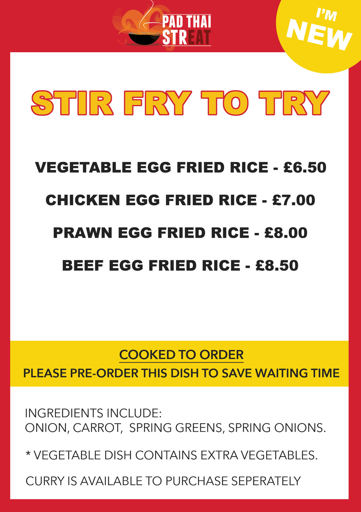 The pricing on the 'Stir Fry To Try' leaflet is incorrect. Correct Pricing can be found on the menu page!